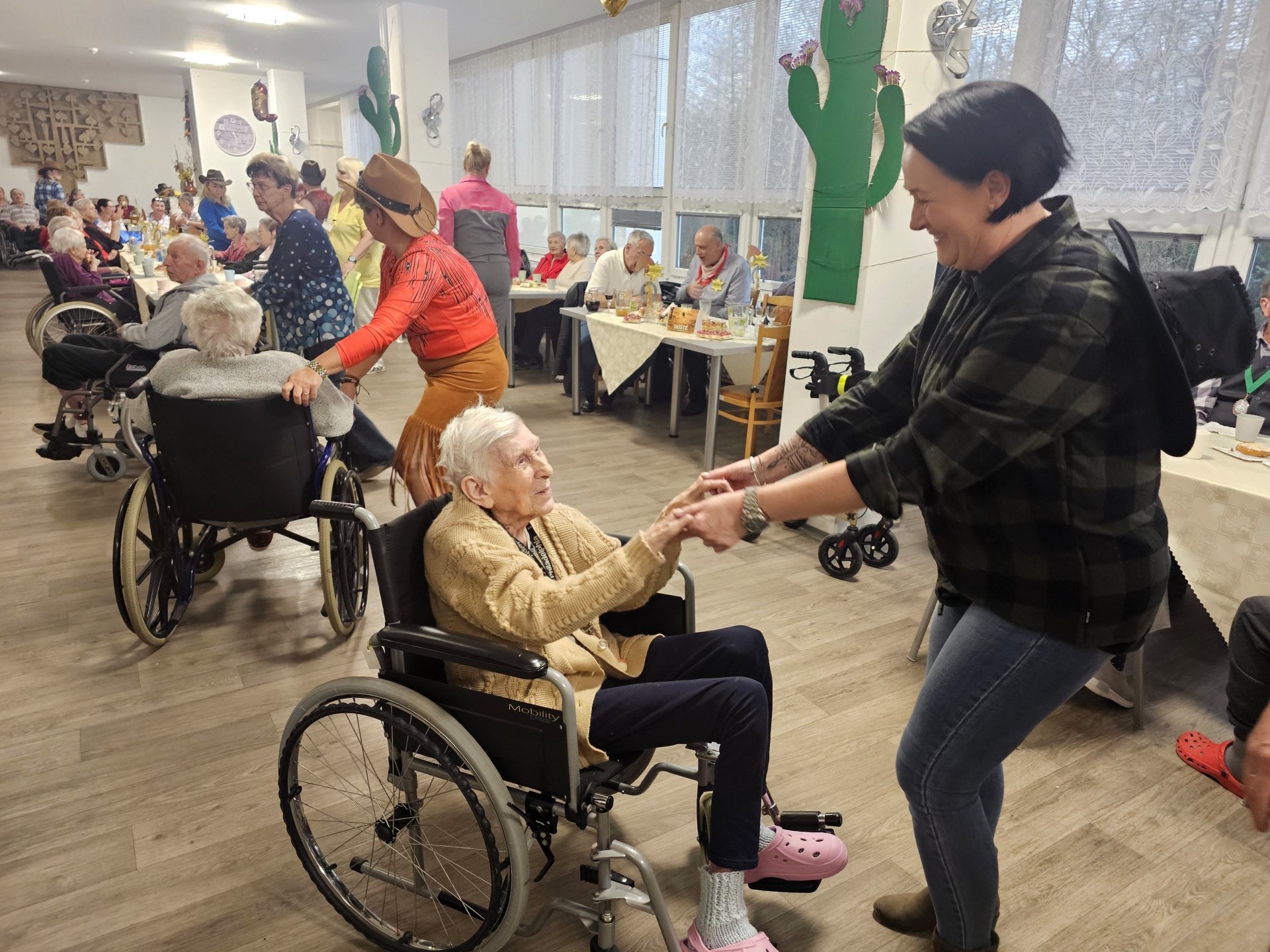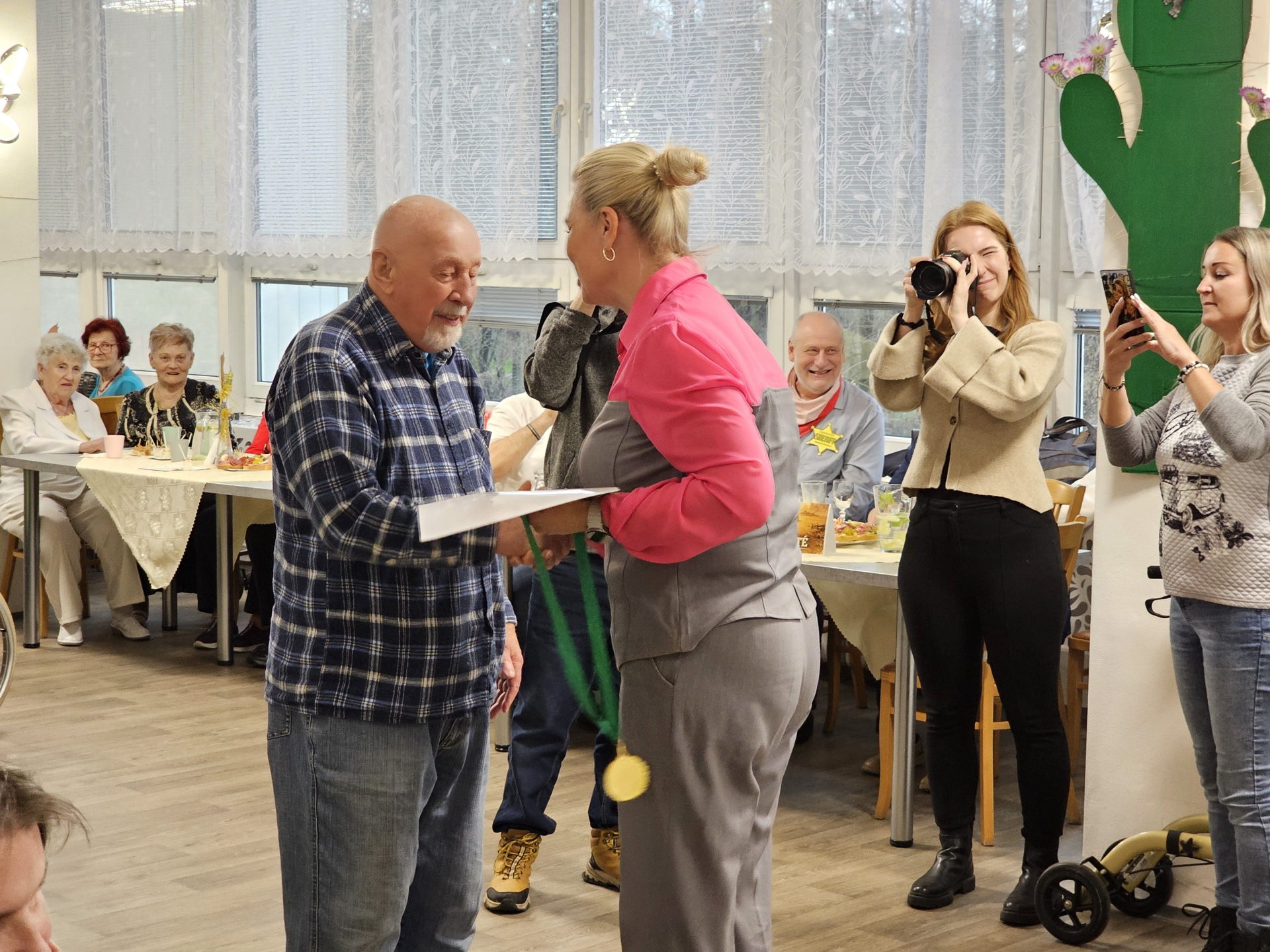 V březnu jsme uspořádali Westernový ples pro naše klienty. K poslechu nám hrála živá hudba (p. Kozelek), vystoupily děvčata z tanečního klubu KMIT a na stolech bylo bohaté občerstvení. Mezi hosty jsme uvítali p. starostku města Orlová Lenku Brzyskowskou, místostarostu města Orlová p. Petra Stuchlíka, ředitelku SSMO p. Mgr. Jarmilu Bernou a klienti sociálních služeb města Orlová. V rámci plesu byly předány i medaile za hru v holandském biliáru.